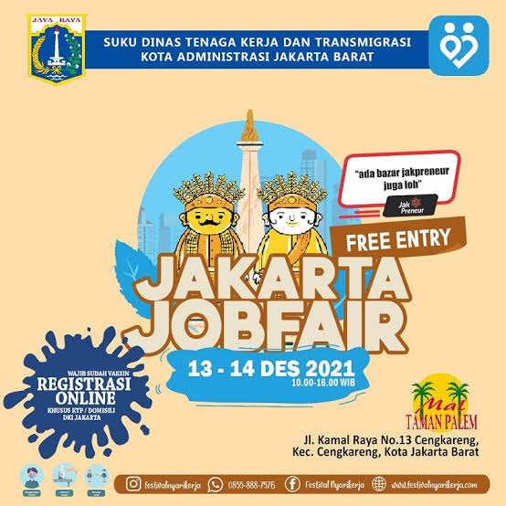 Nusantarapedia.net, Jakarta — Job fair atau bursa kerja Jakarta akan diramaikan oleh 40 perusahaan. Kegiatan ini akan dihelat oleh Pemerintah Kota (Pemkot) Jakarta Barat pada Juli 2022 mendatang.
