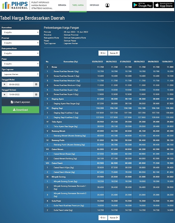 Hari ini, Kamis (9/6/2022), bagaimana harga pangan update di wilayahmu (Indonesia), terutama untuk sembilan bahan pokok (sembako), apakah mengalami kenaikan, penurunan maupun dalam posisi harga yang stabil di pasar-pasar penyedia kebutuhan pangan, hingga pedagang sayur keliling.